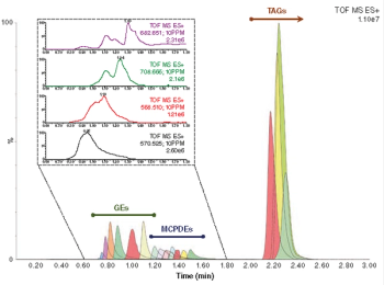 The aim of this study was to develop an efficient method to enable a rapid determination of nine 3-MCPDEs and seven GEs in vegetable oils within a single run employing supercritical fluid chromatography coupled to high-resolution tandem mass spectrometry (SFC–HRMS/MS).